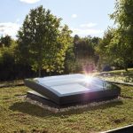 Okna do dachów płaskich pozwalają doświetlić pomieszczenia naturalnym światłem, gwarantując przy tym najwyższą jakość i szczelność. Do tej pory w podstawowej ofercie firmy VELUX, okno zabezpieczała przezroczysta lub matowa kopuła, wykonana z wysokiej klasy akrylu lub poliwęglanu. Dwa lata temu na rynku pojawił się nowoczesny moduł szklany, wykonany z 4 mm hartowanego szkła i wykończony aluminiowymi profilami na krawędziach. Teraz firma VELUX kolejny raz poszerza ofertę w tym segmencie produktów. Nowa propozycja to Sferyczny Moduł Szklany z zakrzywionym szkłem.