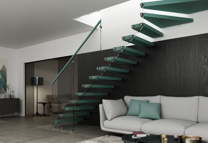 Schody w kolorze turkusowym to doskonałe rozwiązanie do mniejszych i ciemnych wnętrz – to rześka barwa, która zapewnia pożądany w takich przestrzeniach efekt głębi. Sam kolor dobrze wpływa na nastrój, pomaga w zachowaniu pogody ducha, dodaje optymizmu i sił witalnych. Schody w turkusowej barwie sprawdzą się szczególnie w minimalistycznych domach, będąc doskonałym tłem dla czerni, grafitu i bieli. Zestawione z dodatkami w odcieniach wrzosu i delikatnej szarości, pięknie zaprezentują się we wnętrzach prowansalskich czy będą wstępem dla wnętrz w stylu skandynawskim lub hygge.