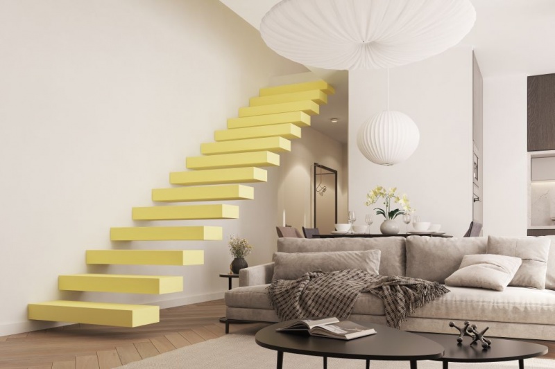 Jednym z bardziej niecodziennych rozwiązań są schody w kolorze żółtym. To świetne rozwiązanie do pomieszczeń z niewielką ilością światła dziennego. Jasna, ciepła żółć ożywia bowiem wnętrze i dodaje mu jasności. Poza tym kolor żółty jest bardzo pozytywny. Stosowany w umiarze inspiruje, pobudza do działania, wnosi radość i rozładowuje napięcie. W nadmiarze może jednak wywoływać irytację, dlatego instalując schody w kolorze żółtym warto wybrać modele samonośne, o konstrukcji ukrytej w ścianie, bez balustrady – składające się wyłącznie ze stopni.