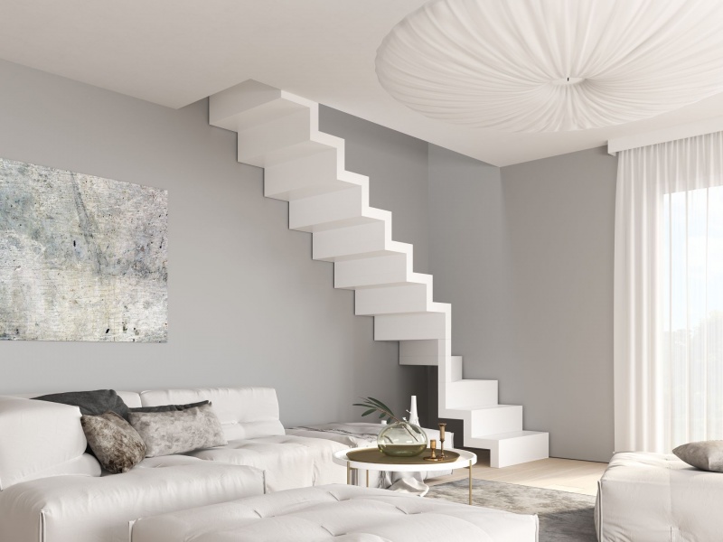Alternatywą są schody z podstopnicami sprawiającymi wrażenie spływającego z piętra dywanu. Obie konstrukcje, pozbawione stelaży i balustrad, eksponują wyłącznie stopnie. Stanowią bezprecedensowe rozwiązania do bardzo nowoczesnych i młodych duchem wnętrz.