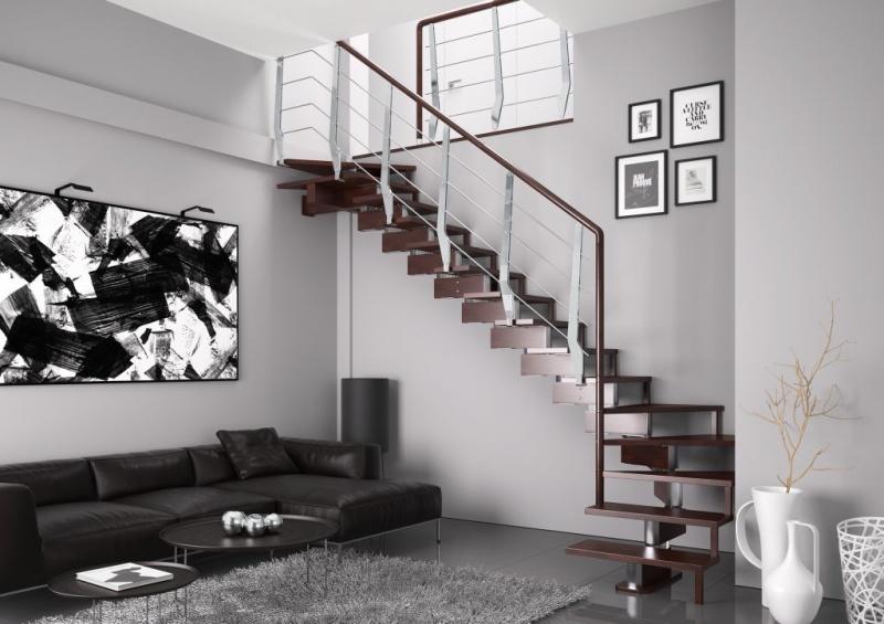 Schody w kształcie litery S to modele dwuzabiegowe, które dwukrotnie zmieniają swój kierunek, skręcając o 90 stopni – zwykle na szczycie i tuż przy ziemi. To świetna propozycja do małych wnętrz, a tym samym – alternatywa dla schodów spiralnych. Mimo że zajmują dość mało miejsca, są ergonomiczne w korzystaniu, szczególnie jeżeli zostaną uzupełnione o dającą dużo komfortu, wygodną balustradę. Warto wyposażyć je także w ledowe oświetlenie, montowane pod stopniami, co doda konstrukcji lekkości i stworzy wrażenie jeszcze większej przestronności.