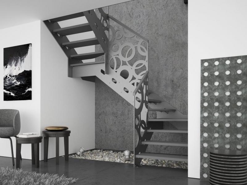 Zaletą schodów w kształcie litery C jest ich oryginalna, wręcz bezpardonowa forma sprawiająca, że schody zwracają na siebie uwagę. Bardzo ważną rolę odgrywają tutaj stopnie, które powinny być ażurowe, bez podstopnic. Dzięki temu schody zyskują na lekkości. Równie istotna jest balustrada, która obok efektu wizualnego, powinna zapewniać odpowiednie oparcie podczas chodzenia po tych jednak dość zakręconych schodach. Warto, aby miała komfortowy pochwyt oraz ciekawą formę, np. metalową o laserowo wycinanych wzorach.