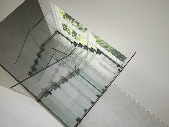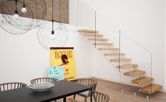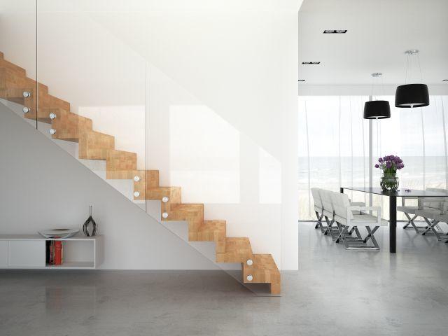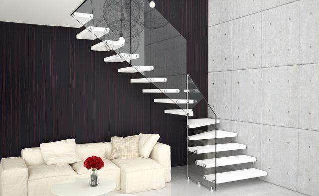 Schody, który konstrukcja z jednej strony opiera się na metalowych trzpieniach mocowanych w ścianie, a z drugiej – hartowanych elementach szklanych to propozycja wyjątkowo luksusowa. Takie schody sprawiają wrażenie lewitujących w przestrzeni, przez co są dość niecodzienną formą. Wyrafinowanego kunsztu dodają panele szklane montowane z boku lub przecinające stopnie. Łącząc w sobie szklany minimalizm z tradycyjnymi stopniami drewnianymi, takie schody są dominującym elementem w każdym wnętrzu (np. model Aira od Rintal Polska).