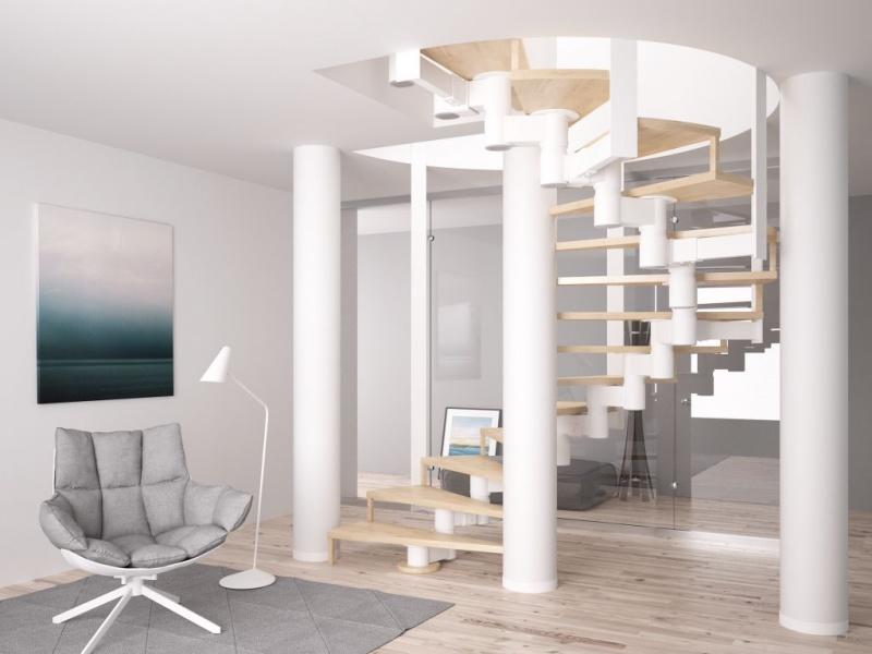 Schody kręcone są doskonałym wykończeniem niewielkiego, dwupoziomowego apartamentu czy mieszkania loftowego. Płynne, strzeliste linie oparte na konstrukcji pionowej zabierają najmniej miejsca, dając pewność, że pomieszczenie nie tylko nie traci przestrzeni, ale dodatkowo jest lepiej doświetlone.