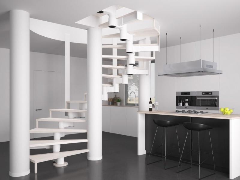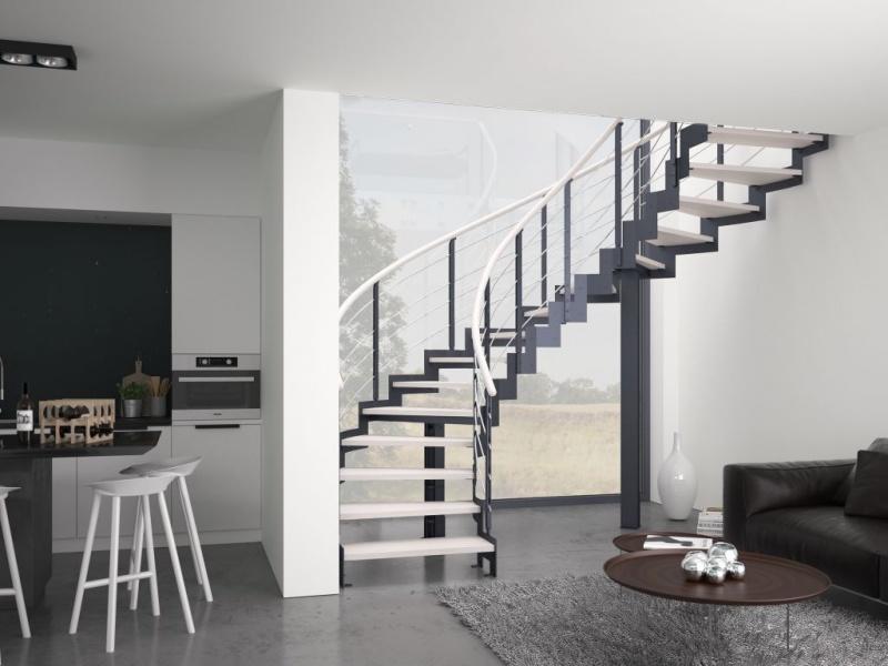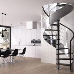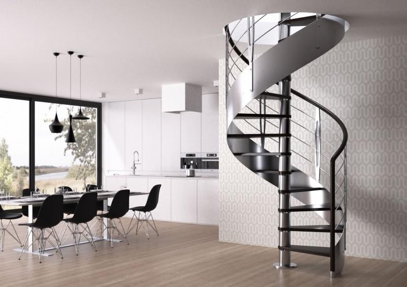 Dziś schody kręcone i spiralne rzadko ukrywa się w holu czy rogu pomieszczenia. Tak efektowny design, tworzony przez pionowo rozłożoną powierzchnię i często nieszablonowe dodatki, zasługuje na bardziej fantazyjną lokalizację. Nierzadko więc modele instaluje się w salonie czy pomiędzy salonem a otwartą kuchnią, dzięki czemu stanowią wizualny separator oddzielający część jadalną od wypoczynkowej.