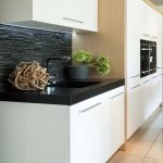 Najbardziej rozpowszechnionym sposobem wykańczania ściany pomiędzy meblami kuchennymi jest położenie na niej płytek ceramicznych. Jest to rozwiązanie bardzo praktyczne (płytki łatwo i szybko się czyści), trwałe (glazura jest odporna na działanie wilgoci, kuchennych zabrudzeń czy wysokiej temperatury) i stosunkowo tanie. Do niedawna niezwykle popularne były małe, kwadratowe płytki lub mozaika. Jednak ich podstawową wadą była duża ilość fug, które niestety w kuchni narażone są na duże zabrudzenia. Dziś częściej wybiera się płytki wielkoformatowe, najlepiej łączone bezfugowo. To nie tylko rozwiązanie bardziej praktyczne ale i zdecydowanie bardziej dekoracyjne. Zwykle układane są poziomo, przez co dużo lepiej się prezentują, poprawiając optycznie proporcje wnętrza. Płytki dostępne są w setkach wzorów i kolorów, dlatego z pewnością każdy znajdzie odpowiednią kolekcję do swej kuchni.