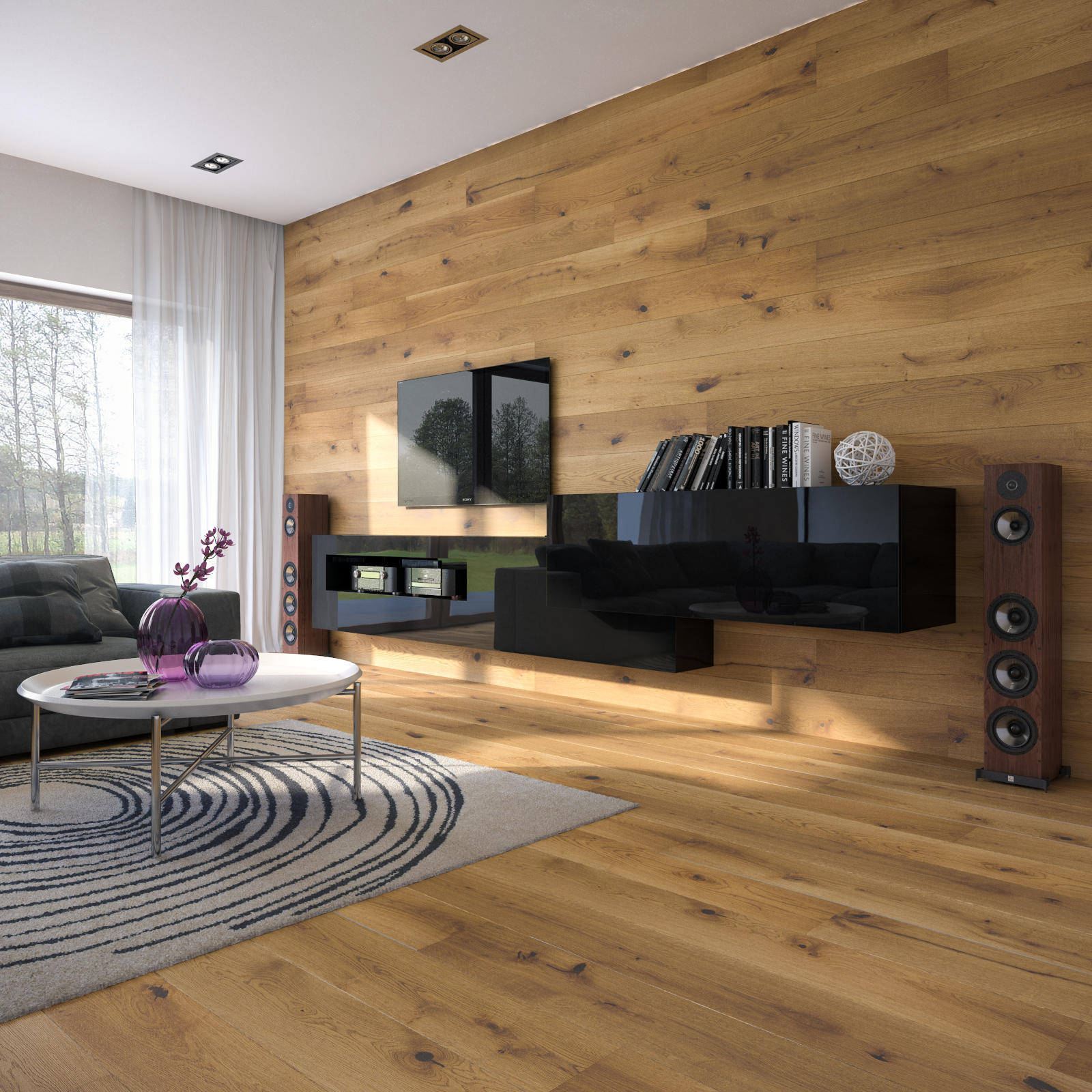 Deska Barlinecka zamontowana na ścianie dopełnia aranżację, dodając jej ciepła oraz oryginalności. Może być dominantą wnętrza albo szlachetnym tłem dla mebli i dodatków. Harmonijnie łączy się m.in. z drewnianą lub kamienną podłogą.