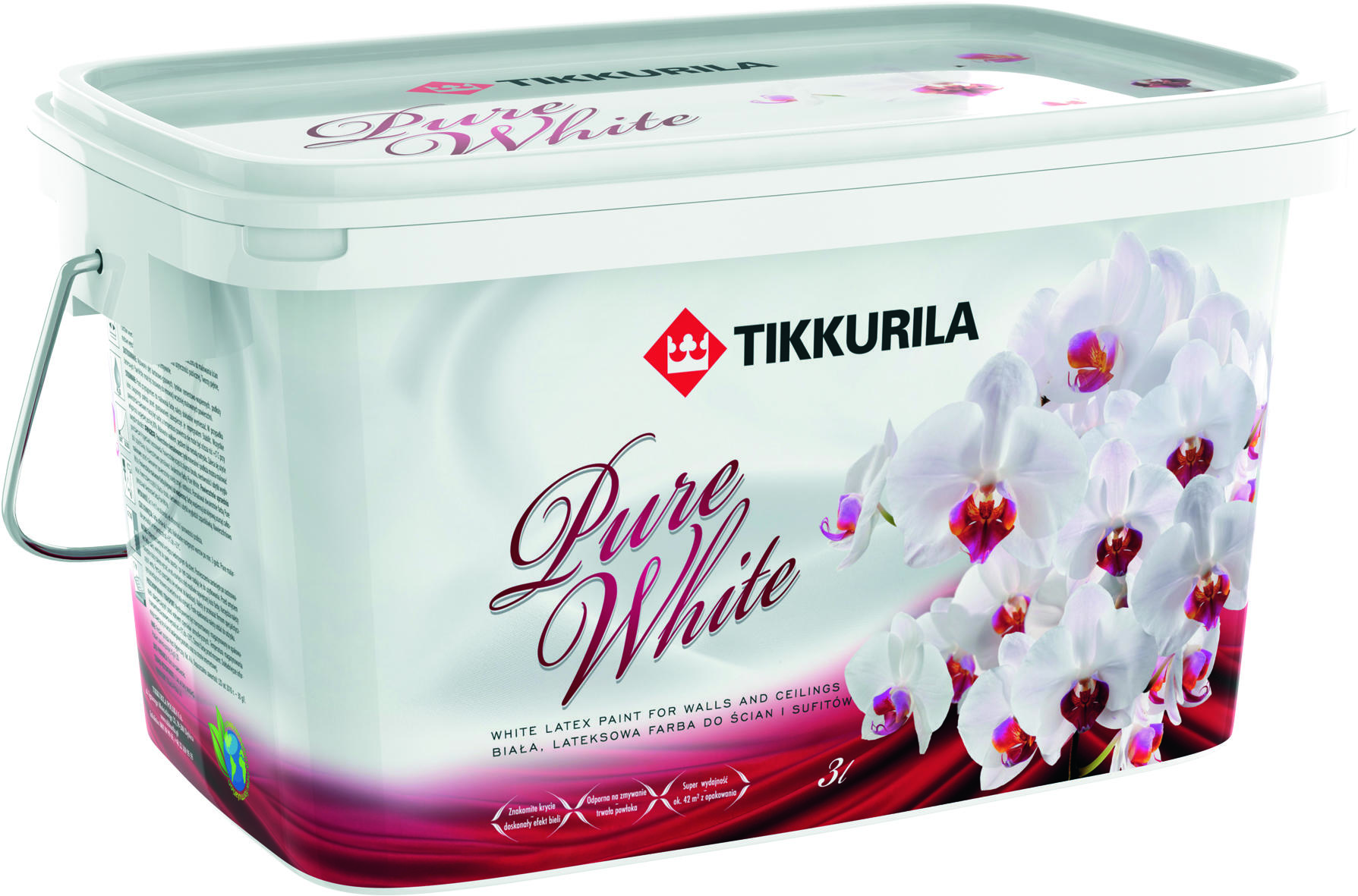 Efekt śnieżnej, doskonale czystej bieli, o głęboko matowym wykończeniu zapewni użycie farby Tikkurila Pure White. Ten pełen elegancji odcień pomoże w uszlachetnieniu i wizualnym uporządkowaniu wnętrza. Dużą zaletą farby Pure White jest komfort aplikacji – farba ta doskonale się rozprowadza, nie kapie i dobrze kryje. Warto podkreślić, iż jest ona rekomendowana przez Polskie Towarzystwo Alergologiczne.