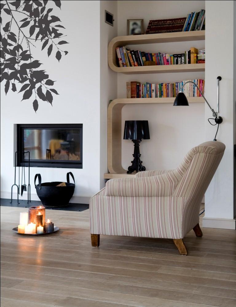 Połączenie białych ścian z drewnianą podłogą oraz z meblami i elementami wyposażenia wykonanymi z naturalnych materiałów, pozwoli stworzyć aranżację kuszącą przytulnym ciepłem oraz obietnicą relaksu i wyciszenia negatywnych emocji. By przestrzeń nabrała bardziej zdecydowanego charakteru, warto pokusić się o użycie szablonu i stworzenie oryginalnej, kwiatowej dekoracji ściennej w kontrastowym kolorze.