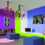 Dynamiczne kolory ścian narzucają pewne oczekiwania optyczne. We wnętrzu limonkowo – turkusowym dobrze byłoby, gdyby sufit pozostał biały. Ozdobna biżuteria w postaci żyrandola z wielobarwnych kryształków z pewnością zadba o to, aby sufit nie wydawał się nudny. Świetlne iluminacje wydobędą tajemnicę kolorów i po zmroku ukażą ich ukryty, w ciągu dnia, potencjał.