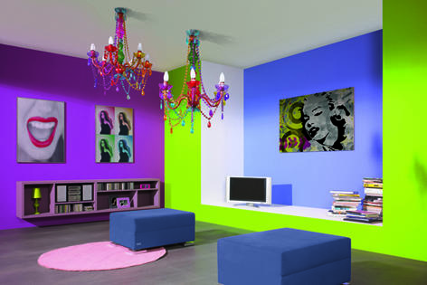 Komponowanie ze sobą barw nie jest rzeczą łatwą i wymaga dokładnych przemyśleń. Producenci starają się ułatwić wybory, opracowując grupy kolorów, które zestawione ze sobą zawsze będą współgrały. Dzięki temu można skierować inspiracje na właściwe tory, jednocześnie uwzględniając tendencje współczesnej mody. Osiągnięcie efektu doskonałego jest możliwe o ile próby aranżacji zostaną podjęte już na etapie projektowania. Mimo minimalistycznego założenia, w prezentowanym wnętrzu uzyskano ekstrawagancki efekt poprzez użycie mocnych kolorów i plastycznych dekoracji. Wprowadzenie elementów graficznych rozbiło jednolitą płaszczyznę ściany a geometryczne dodatki: wazony, półki i poduszki przywodzą na myśl wielkomiejską elegancję.