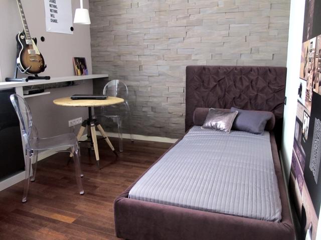 Przeobrażenie pokoju muzycznego Weroniki w miejsce zachęcające do twórczych działań, a jednocześnie przytulne i dziewczęce było nie lada wyzwaniem. Warunek był taki, że ma być w nim dużo plakatów i stolik zamiast biurka. Ulubionym kolorem nastolatki jest fiolet, który też miał się pojawić się we wnętrzu.