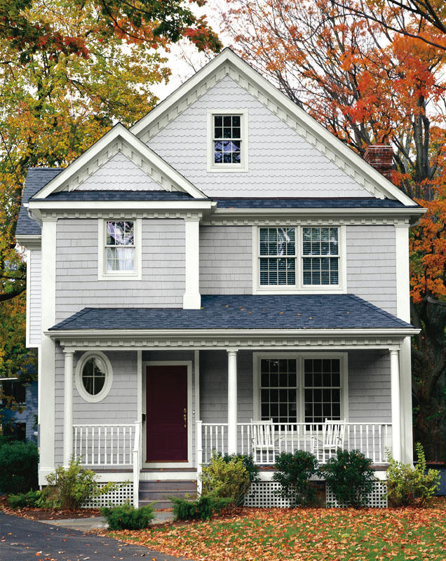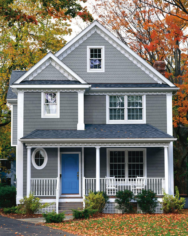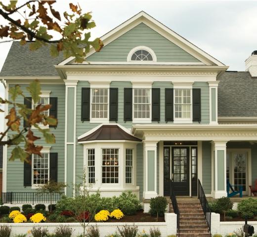 Warto zwrócić też uwagę na zabudowania sąsiadujące z posiadłością, ich styl oraz kolor. W przypadku neutralnych barw, ich elegancję podkreślą pomalowane na biało detale. Możemy też użyć jednego koloru w różnych odcieniach, które posłużą do eksponowania najbardziej urokliwych elementów domu.