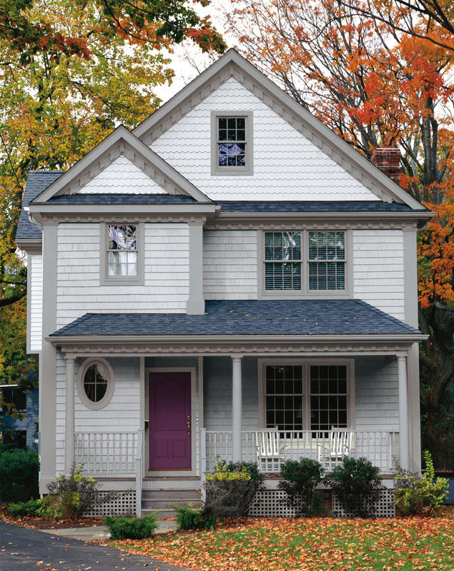 W zewnętrznej aranżacji istotną rolę odgrywają drzwi. Nadanie im odważnej barwy sprawi, że stanowić będą mocny, przykuwający spojrzenie akcent. Nie należy zapominać, że kolory z zewnątrz przenikają do wnętrz, jak na przykład barwa framug okiennych. Dlatego myśląc o aranżacji zewnętrznej postarajmy się, by była ona spójna z wewnętrznym wystrojem domu. Wszystkie drewniane elementy eksponowane na zewnątrz można przemalować na dowolny kolor lekierobejcą ARBORCOAT® Exterior Waterborne Solid Deck & Siding Stain 640 marki Benjamin Moore. Uzyskamy wówczas najlepszą ochronę drewna i zachowamy jego atrakcyjny wygląd na długie lata.