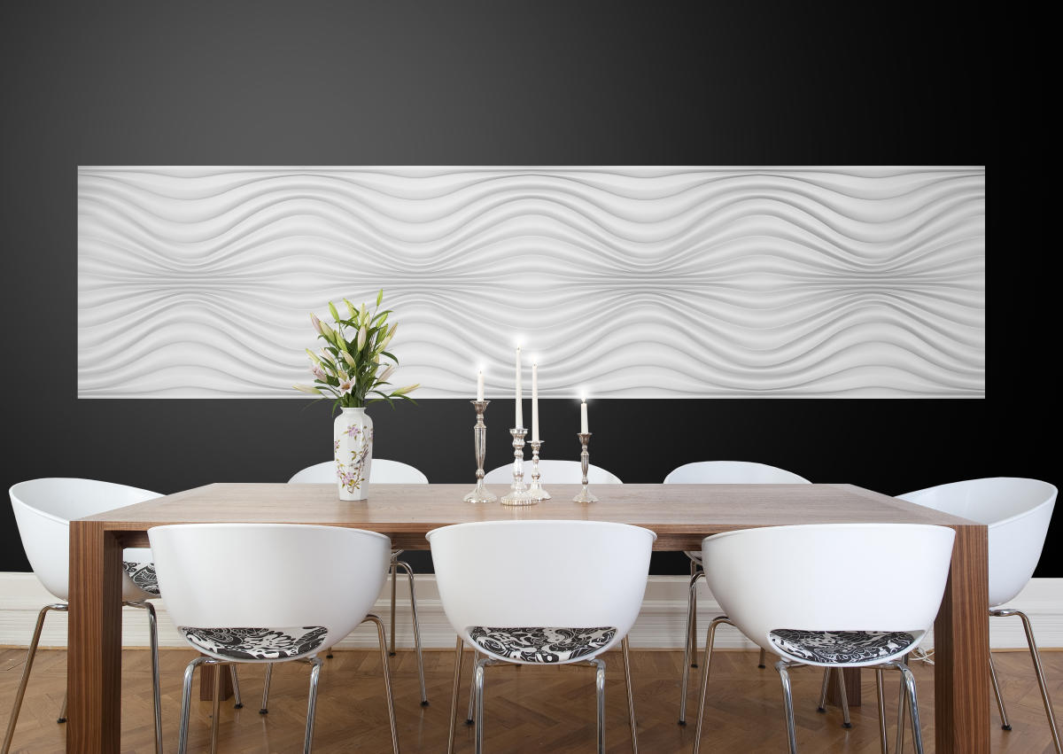 Pięknie wyglądają zarówno nad łóżkiem w sypialni jak również jadalni czy salonie. Panele 3D DUNIN WALLSTAR mogą być pomalowane na dowolny kolor i sposób, tworząc nowoczesną i estetyczna dekorację