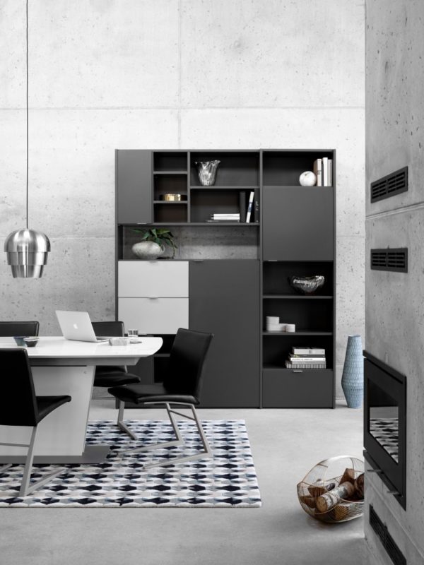Aranżacja z wykorzystaniem czerni wymaga przemyślanych rozwiązań, aby uniknąć efektu przytłoczenia przestrzeni. – Czerń to propozycja, która najlepiej sprawdza się w dużych, dobrze oświetlonych pomieszczeniach. To kolor, który wprowadza nutę ekstrawagancji i wnosi zupełnie nową jakość. Wiele osób boi się zastosowania czerni na ścianach, uważając, że wnętrze stanie się ponure i przygnębiające. Aby tego uniknąć, warto wprowadzić kontrastujące dodatki, które ożywią stylizację. Barwa ta bardzo dobrze prezentuje się w towarzystwie złota lub srebra, tworząc z nimi zestawienia pełne elegancji – radzi Kamil Maślanka z BoConcept Warszawa.