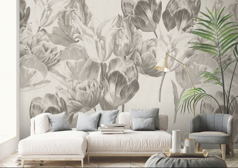 ’Ballerina’, 'Barcelona’ i 'Queen of the night’ to szlachetne odmiany tulipanów, które znajdziemy na tapecie TULIP GARDENS. Inspiracją do jej powstania był największy ogród tulipanowy w Wielkiej Brytanii, Ulting Wick. Precyzyjny, cieniowany szkic wprowadzi do wnętrza spokój i wyrafinowaną elegancję.