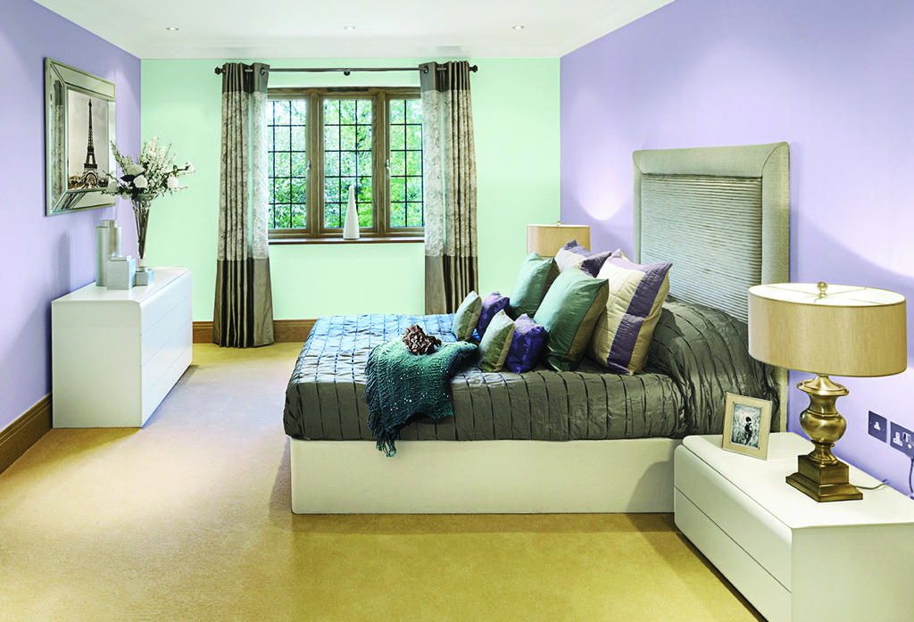 Kolory w sypialni mogą również pobudzać emocje i stwarzać w pomieszczeniu zmysłową atmosferę, która ożywi intymną relację każdej pary. Kolorem o takim działaniu jest na przykład fiolet – tajemniczy, szlachetny i zmysłowy, a jednocześnie wyciszający. Dyskretny, sprzyjający intymności klimat możemy uzyskać wykorzystując w przestrzeni sypialni np. farbę Śnieżka Satynowa w kolorze „Królowa nocy”, której jasny i świetlisty odcień nada wnętrzu niezwykły, nieco romantyczny charakter. Dla osób o usposobieniu introwertycznym, tego typu barwy dominujące we wnętrzu mogą się jednak okazać zbyt mocne. Można je wówczas złagodzić jasnymi, delikatnymi kontrastami.