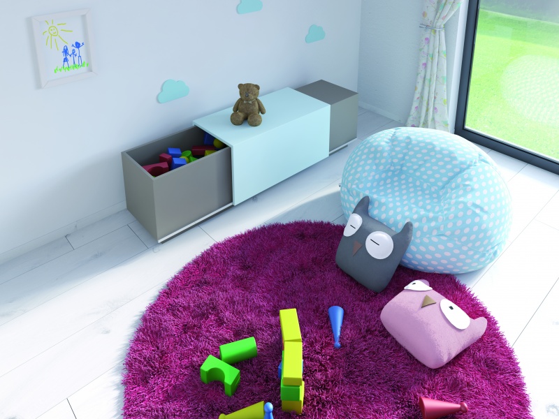 Zabawy z pociechą bywają męczące, dlatego w pokoju dziecka sprawdzi się nietypowa „ławka”. Można na niej wygodnie usiąść, a po skończonej zabawie wystarczy lekko przesunąć ruchomy front i schować do środka zabawki. Jak to możliwe? System do małych frontów przesuwnych SlideLine M pozwala projektować pomysłowe meble, które kryją w sobie dodatkowe funkcje. W ten sposób oszczędzamy miejsce, a jednocześnie optymalnie wykorzystujemy zabudowę meblową.