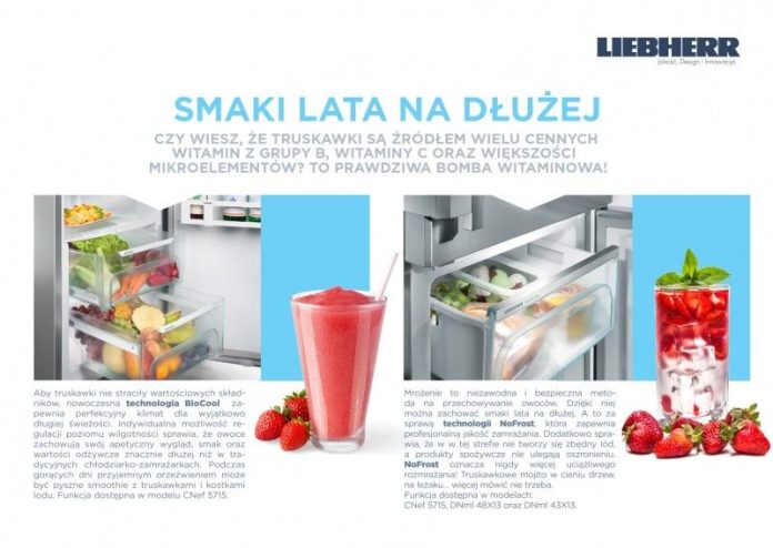 Za sprawą technologii NoFrost, w zamrażarce nie tworzy się zbędny lód, a produkty spożywcze nie ulegają oszronieniu. NoFrost oznacza nigdy więcej uciążliwego rozmrażania! Polecamy truskawkowe mojito z zamrożonymi owocami jako idealne rozwiązanie na letni, upalny dzień J. Technologia dostępna w modelach z linii Comfort CNef 5715, DNml 48X13, DNml 43X13.