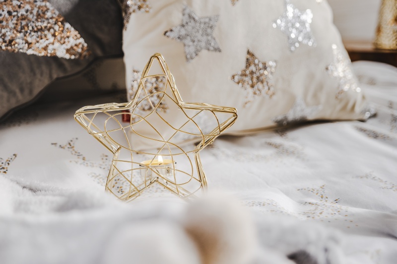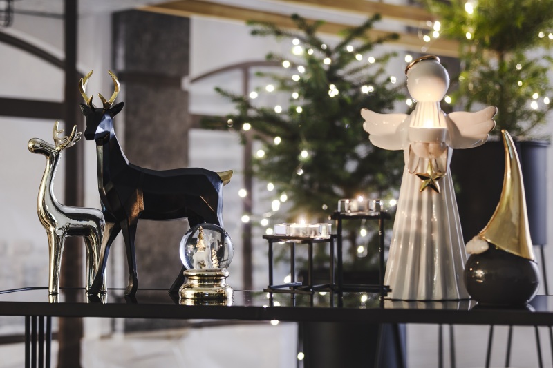 Mniej znaczy więcej to złota zasada minimalizmu. Ograniczając liczbę świątecznych dekoracji poświęcamy więcej uwagi na dopracowanie szczegółów. Zamiast kilku stroików – wystarczy jedna bądź dwie duże figurki. Od kilku sezonów „na salonach” triumfują dostojne renifery i proste figury o geometrycznych kształtach. Świecznik ustawiony w pobliżu, emanując ciepłym światłem, sprawi, że detale jeszcze bardziej przyciągną wzrok.
