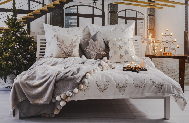 Biel to perfekcyjne rozwiązanie do sypialni, ponieważ właśnie w tym pomieszczeniu, po intensywnym dniu, „resetujemy” umysł i odprężamy ciało. Małe zmiany sprawią, że pomieszczenie stanie się bardziej przytulne – dzięki miękkim materiałom i odświętne – za sprawą ozdobnych poduszek. Drzewko tuż koło łózka? Dlaczego nie! Żywe rośliny działają kojąco, a delikatnie światło lampek sprawi, że długie zimowe wieczory będą pełne romantycznej aury.