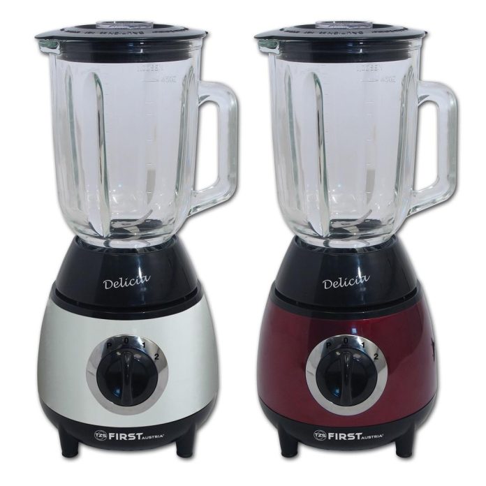 Przygotowanie ulubionego napoju ułatwi prosty w obsłudze Blender firmy First Austria. Urządzenie nadaje się do przyrządzania miksowanych koktajli, soków owocowych oraz napojów mlecznych. Umożliwia zrobienie jednorazowo aż 1,3l napoju, który następnie można zabrać ze sobą na spacer, piknik lub do pracy. Blender posiada dwa stopnie prędkości i przełącznik trybu pulsacyjnego, dzięki czemu przygotowanie napoju nie zajmie wiele czasu. Ciekawym rozwiązaniem i dodatkowym ułatwieniem jest znajdujący się w pokrywie otwór, który umożliwia proste i szybkie dodawanie kolejnych składników.