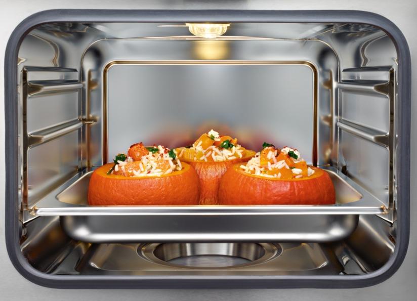 Kompaktowy piekarnik z funkcją pary to doskonały wybór szczególnie dla tych, którzy lubią urozmaiconą kuchnię bez dodatku tłuszczu i chcą się taką podzielić z najbliższymi. Dlaczego gotowanie na parze jest zdrowe? Wykorzystując w przyrządzaniu dań parę, chronimy minerały i witaminy zawarte w produktach. Dzięki temu potrawy zachowują swój naturalny smak i przez to nie wymagają użycia dużej ilości przypraw. Gwarancją zdrowej kuchni jest piekarnik marki Bosch, który poza 40. programami automatycznymi, oferuje cztery rodzaje grzania. Jednym z nich jest funkcja regeneracji idealnie sprawdzająca się przy odświeżaniu makaronów, czy pizzy. Regenerację uzupełnia również program pary i termoobiegu połączonego z gotowaniem na parze. Wybierając jedną z tych możliwości, otrzymujemy gwarancję przygotowania pożywnych i niezwykle smacznych dań, które są soczyste i pełne wartości odżywczych. Do pełnej gamy funkcjonalnych rozwiązań piekarnika, należy zaliczyć także Termoobieg 3D Plus. Funkcja ta umożliwia pieczenie jednocześnie na trzech poziomach z gwarancją zawsze doskonałych efektów. Zasada jej działania opiera się na obiegu powietrza we wnętrzu urządzenia, które jest podgrzewane dzieki grzałce umieszczonej dookoła wentylatora i rozprowadzane przez otwory grzewcze na tylnej ścianie urządzenia. Wybierając funkcję Termoobieg 3D Plus, upieczemy zarówno ciasteczka, jak również duże sztuki mięsa. Dzięki wyposażeniu piekarnika zarówno w programy do pieczenia, jak i w funkcję pary, możemy łączyć gotowanie na parze z konwencjonalnymi sposobami pieczenia. Efektem najpierw ugotowanych na parze, a później podpieczonych za pomocą Termoobiegu, mogą być np. warzywa, które są soczyste, bogate w witaminy i jednocześnie chrupiące z zewnątrz.