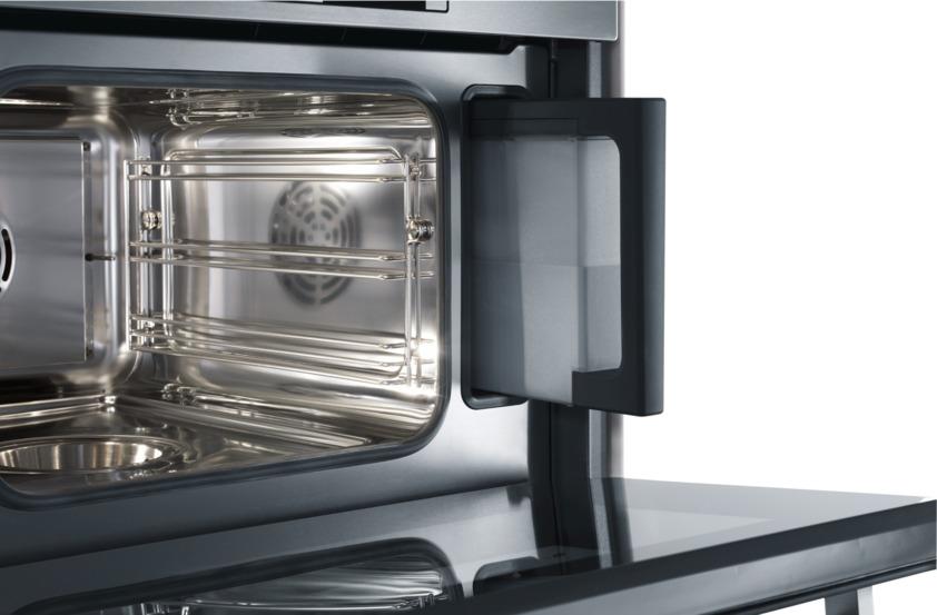 Piekarnik HBC34D554 to także efekt dbałości o najwyższy komfort i bezpieczeństwo obsługi. O bezproblemowe utrzymanie urządzenia w czystości dbają specjalne programy automatyczne do czyszczenia i odkamieniania. Intuicyjną obsługę zapewniają natomiast duży wyświetlacz graficzny i chowane pokrętła, uzupełnione przez oświetlenie wnętrza piekarnika. Pamiętając o najmłodszych, sprzęt wyposażony został również w specjalne zabezpieczenia przed uruchomieniem przez dzieci.
