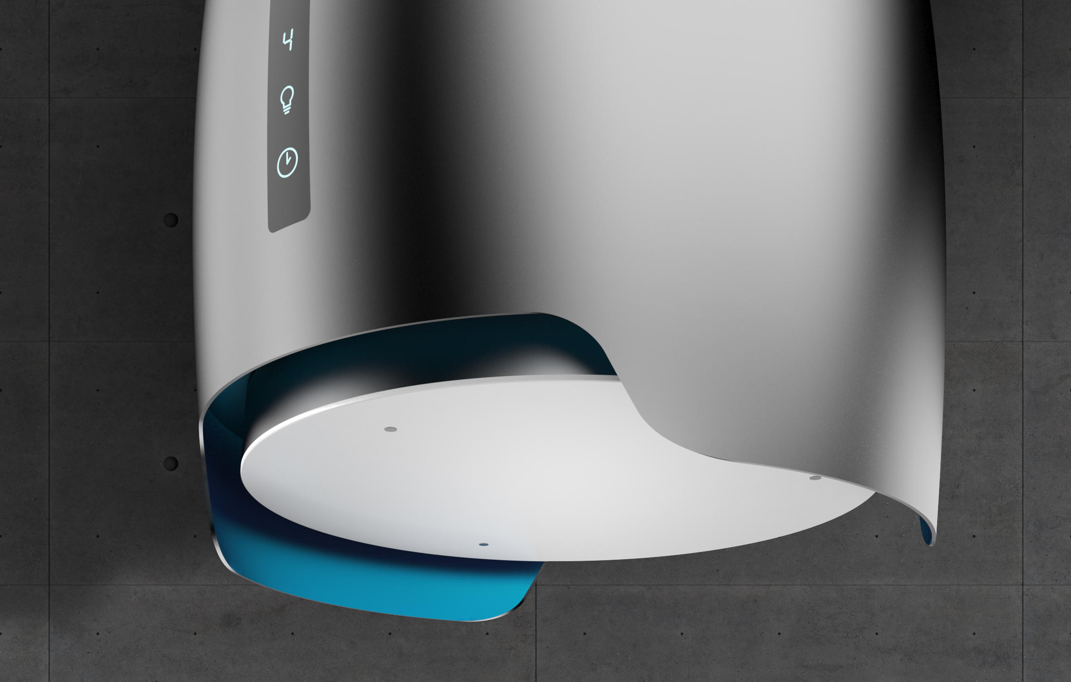 Hydria to nowy okap wyspowy linii Ciarko Design. Model wyposażony jest w oświetlenie LED, timer oraz panel dotykowy typu soft touch, dzięki czemu sterowanie jest intuicyjne i precyzyjne. Ustawienia okapu można zmieniać również za pomocą smartfona.