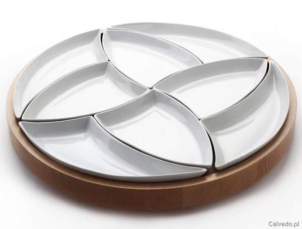 Owszem, kolory pociągają, eklektyzm kusi, a barwne, pełne rozmaitych, dobrze przemyślanych i odpowiednio zestawionych ze sobą bibelotów wnętrza, wyjątkowo zachęcają, by w nich przebywać i sycić się ich pozytywną energią. Jednak warto, choć w jednym z nich postawić na dostojną, czystą biel. Choćby w pomieszczeniu, w którym spędzamy tak wiele czasu – kuchni. Może po to, by stanowiła neutralne tło dla naszych kulinarnych dokonań? A może by ukoić po ciężkim dniu pracy?Biała kuchnia to must-have wielu miłośników designu wnętrz. Niezależnie od tego, czy postawimy na aranżację zawierającą elementy retro, czy zdecydujemy się na swojskie klimaty, czy też wybierzemy chłodną modernę, biel zawsze wygląda dobrze. Sklep Calvado.pl wychodzi na przeciw wizji kuchni w bieli. Oryginalne naczynie Lotus Walnut jest jednocześnie nowoczesne i szykowne. Obrotowa taca umożliwia wygodny dostęp do wszystkich półmisków. Zestaw doskonale sprawdza się jako naczynie do serwowania zimnych i gorących zakąsek, rozmaitych dipów, sosów, owocó, słodyczy.