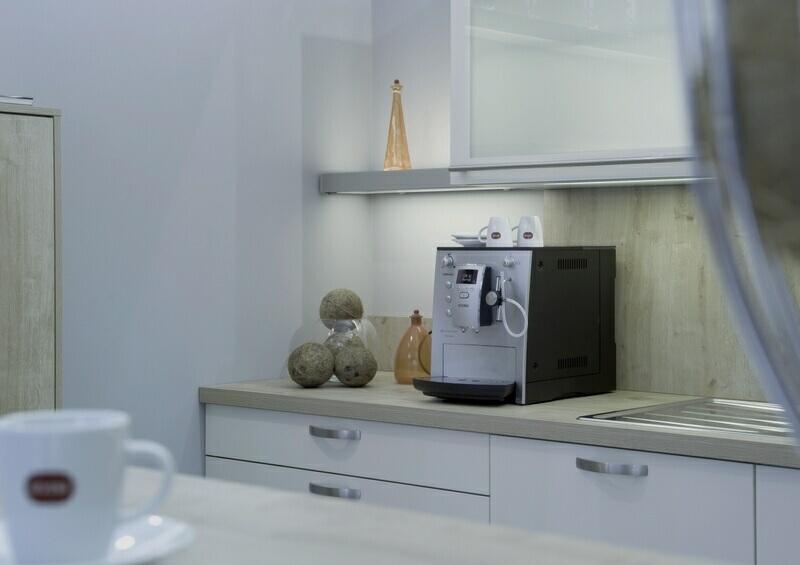 Podświetlanie filiżanek w trakcie przygotowywania kawy
