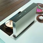 Downdraft zmienia tradycyjne podejście do okapu. Urządzenie może zostać całkowicie ukryte w szafce, dzięki czemu kuchnia zyskuje nową przestrzeń i wymiar. Okap Downdraft jest także przykładem uniwersalnego designu, na który składa się prosta forma, połączenie stali i czarnego szkła, z praktycznym zastosowaniem w przestrzeni kuchennej. Po ukryciu w szafce, urządzenie zajmuje niewiele miejsca, widoczny pozostaje jedynie panel o głębokości 9,5 cm. Szerokość okapu – 88 cm idealnie komponuje się płytami grzewczymi. Podczas pracy okap unosi się ponad powierzchnię blatu 40 cm. Dzięki wydajnemu silnikowi, okap może oczyścić nawet 725 m3 w ciągu 1 godziny. Nie bez znaczenia jest cichy tryb pracy, który podczas intensywnego biegu osiąga głośność porównywalną z rozmową dwóch osób. Urządzenie dodatkowo posiada dekoracyjne oświetlenie LED. Pracuje w czterech trybach w zależności od potrzeby oraz jednym intensywnym, sterowanie odbywa się za pomocą pilota.