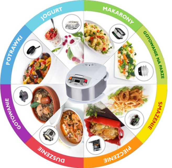 Multicooker to wielofunkcyjne urządzenie do gotowania, smażenia, pieczenia, podgrzewania, gotowania na parze, przygotowania ryżu, makaronu a także domowego jogurtu czy też owocowych przetworów! Multicooker sprawia, że Twoje potrawy – od przystawek, przez zupy, dania główne aż po desery i ciasta – są różnorodne, jeszcze smaczniejsze oraz prostsze w przygotowaniu. A wszystko to dzięki jednemu urządzeniu – bez bałaganu oraz zbędnej krzątaniny!