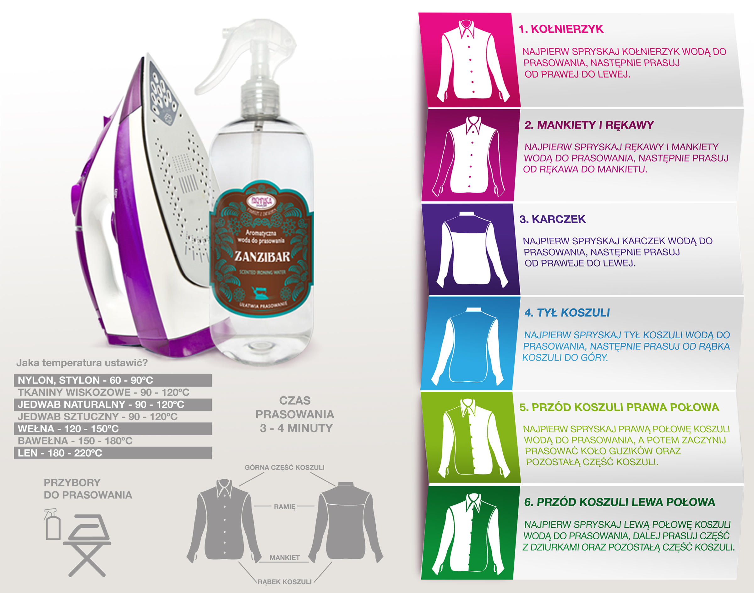Już nasze prababki wiedziały, że przy prasowaniu bardzo pomocne jest zwilżenie tkaniny. Skrapianie palcami, lub – o zgrozo! – rozpryskiwanie po powierzchni materiału wody nabranej wcześniej w usta było ich stało praktyką. Na szczęście dziś w sprzedaży można znaleźć szeroki wybór żelazek z wbudowaną funkcją zraszania lub wykorzystujących działanie pary wodnej. Warto też zwrócić uwagę na aromatyzowane wody do prasowania, które łączą skuteczność działania, ułatwiając rozprasowywanie najbardziej opornych zagnieceń, z nadawaniem prasowanym tkaninom subtelnego zapachu.