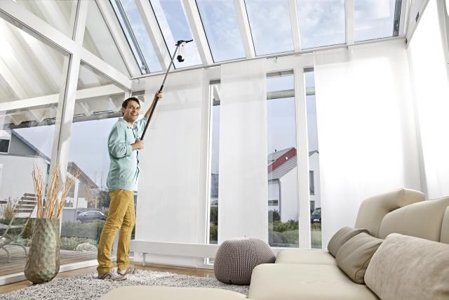 Myjka do czyszczenia okien WV 50 Plus to urządzenie, które nie tylko skraca czas pracy ale również gwarantuje komfort mycia okien! Urządzenie przeznaczone jest do mycia wszelkiego rodzaju powierzchni szklanych. Czyszczoną powierzchnię wystarczy spryskać środkiem czyszczącym, a następnie przetrzeć ściereczką z mikrofibry. Na koniec wystarczy zebrać wodę przy pomocy urządzenia, które funkcjonuje niczym odkurzacz. Myjka zbiera brudną wodę nie pozostawiając żadnych plam ani smug. Jedno opakowanie środka czyszczącego w koncentracie wystarcza na przygotowanie 250 ml płynu (jeden zbiornik), który doskonale usuwa m.in. tłuszcz, zabrudzenia atmosferyczne, kurz, a nawet osad z dymu papierosowego. Myjka wyposażona w litowo-jonową baterię jest bardzo lekki (700 g) i wygodny w użytkowaniu. W pełni naładowana bateria VW 50 pozwala na umycie do 30 m2 powierzchni, co odpowiada 10-15 oknom. Praca WV 50 Plus należy do jednych z przyjemniejszych i skuteczniejszych jak również ekologicznych czynności domowych porządków. Teraz w ofercie specjalna lanca teleskopowa, dzięki której można czyścić okna trudno dostępne oraz okna dachowe. W zestawie ze ssawką oraz z padem z mikrofibry.