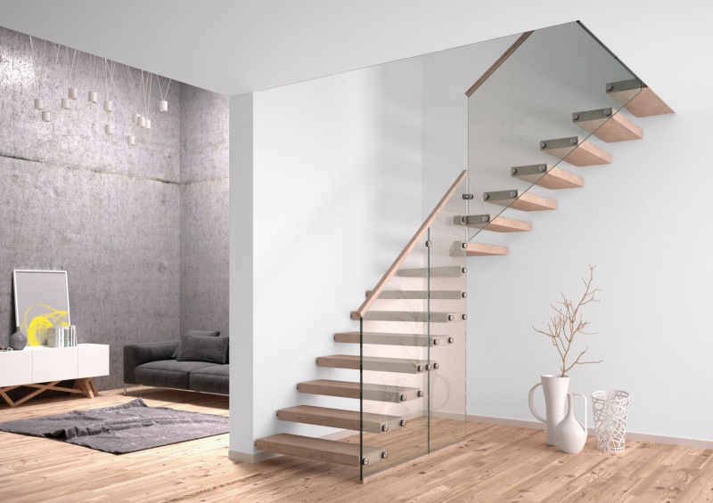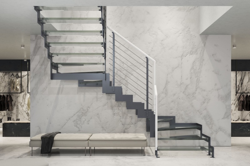 Stopnie ze szkła dają wizualną lekkość. Są smukłe i dekoracyjne, podkreślając przestronność dużych domów, jak i służąc do optycznego powiększenia małych pomieszczeń. Wykonywane są z dbałością o każdy szczegół, a powstają ze szklanych płyt, które laminuje się warstwowo foliami.