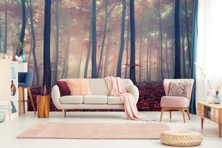 Wnętrze w kolorach jesieni jest ciepłe i przytulne, a tego nam przecież trzeba! Dodatki i elementy przeniesione wprost z natury, takie jak fototapeta z widokiem lasu lub gór odczarowują aurę panującą na zewnątrz, wprowadzając harmonię i spokój.