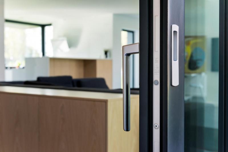 Z budynkami o minimalistycznej bryle doskonale komponują się okna, w których od zewnątrz zamontowano płaskie profile aluminiowe, przykrywające jednocześnie skrzydło i ramę. Daje to efekt zlicowania ze ścianą, charakterystyczny dla konstrukcji fasadowych. Takie rozwiązanie zastosowano m.in. w oknach drewniano-aluminiowych z linii PURO oraz w drzwiach tarasowych THERMO HS ALU marki Sokółka Okna i Drzwi.