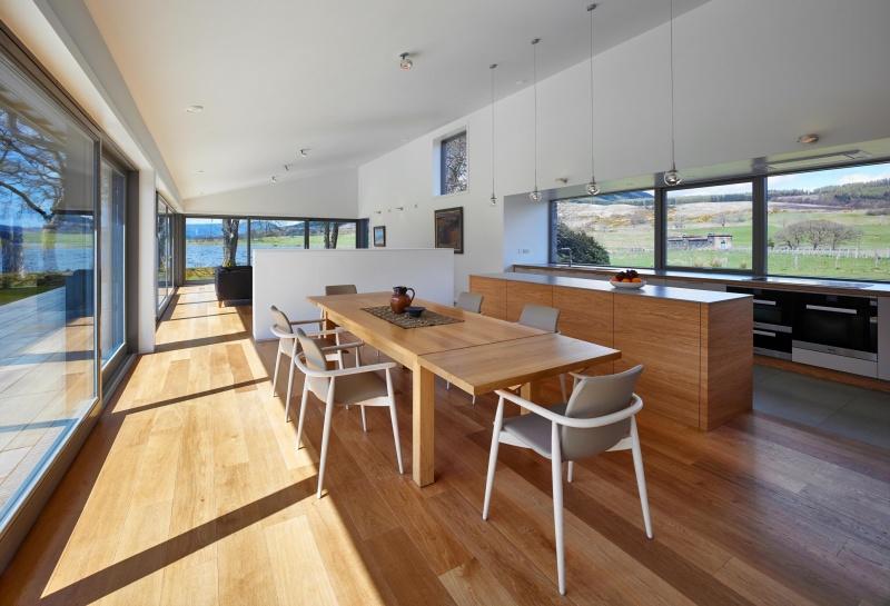 Ogromne tafle szkła nadają bryle budynku lekkości, doświetlają wnętrza i harmonijnie łączą je z otoczeniem. Okna i drzwi tarasowe, które nierzadko zajmują powierzchnię całej ściany, podkreślają nowoczesny i elegancki charakter domu. Jednocześnie pozwalają powiększyć optycznie pomieszczenia. Krajobraz za oknem staje się integralną częścią wystroju wnętrz, a ogród i taras stanowią naturalne przedłużenie salonu. Zastosowanie wielkoformatowych przeszkleń zapewnia lepszy dostęp światła naturalnego. Z jednej strony wpływa to korzystnie na nasze samopoczucie, a z drugiej zmniejsza zapotrzebowanie na doświetlanie pomieszczeń światłem sztucznym.