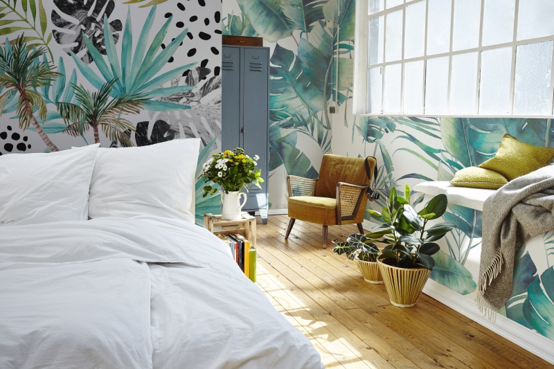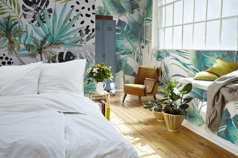 Urban jungle najlepiej wygląda w wersji total look, dlatego poza roślinami w doniczkach warto poszukać innych elementów wystroju i dodatków, które uzupełnią aranżację o żywe kolory i hipnotyzujące motywy.