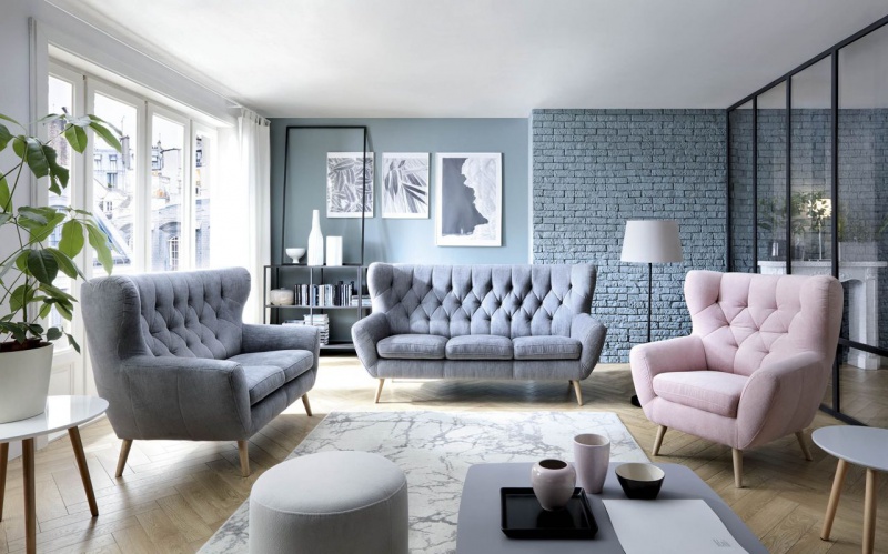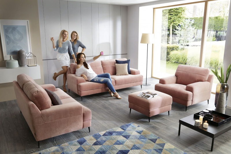 „Wybór koloru mebli do salonu będzie w tym roku niezmiernie ważny – w 2019 skusimy się na zestawy wypoczynkowe w intensywnych barwach. Meble w wyrazistych kolorach, które do niedawna podziwialiśmy na sklepowych ekspozycjach, przeniosą się wreszcie do naszych domów. Już w zeszłym roku przyciągały nasz wzrok, stanowiąc doskonałą przeciwwagę do stonowanych elementów wnętrza. Teraz popularne beże, szarości i brązy zastąpimy mistrzami elegancji: ciemną zielenią, morskim granatem czy królewskim bordo. Sofy w tych odcieniach będą prezentować się dystyngowanie, a jednocześnie nie narzucą wnętrzu sztywnego charakteru. Ich głęboka barwa stanie się pięknym tłem dla obrazów, grafik i jaśniejszych dodatków” – podpowiada Anna Orowiecka-Stanisławska z pracowni Oro Concept. Do wnętrz wkroczy także Living Coral, nowy kolor roku Pantone, ale w salonie sprawdzi się raczej w formie dodatków, idealnie współgrając np. z oliwkową sofą. Ciepłe kolory wrócą do wnętrz wraz z modą na styl vintage. Skórzane, proste sofy w odcieniu nugatu, czy koniaku, dla jednych będą nowością, dla innych stanowić będą miłe wspomnienie i nawiązanie do czasów dzieciństwa. Zagrają świetnie w aranżacjach w stylu boho, otoczone zielenią i ażurowymi meblami. Ogromną popularnością wciąż będą się cieszyć mocno pikowane propozycje w towarzystwie oświetlenia o geometrycznych kształtach oraz dodatki w pastelowych odcieniach.
