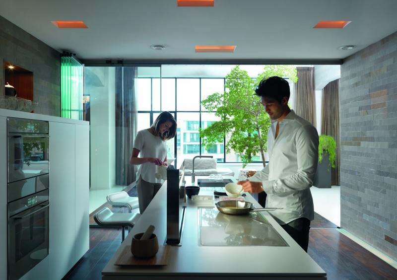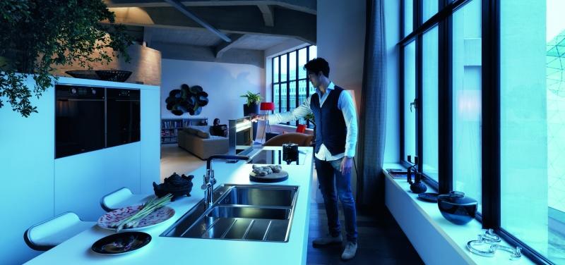 Wieczorem zaś kuchnia Style zmienia się w niezwykle nastrojowe miejsce. Po skończonej pracy, okap chowa się w blacie, a deska do krojenia zamienia się w innowacyjną płytę oświetleniową, która jednocześnie zakrywa komorę zlewozmywaka.