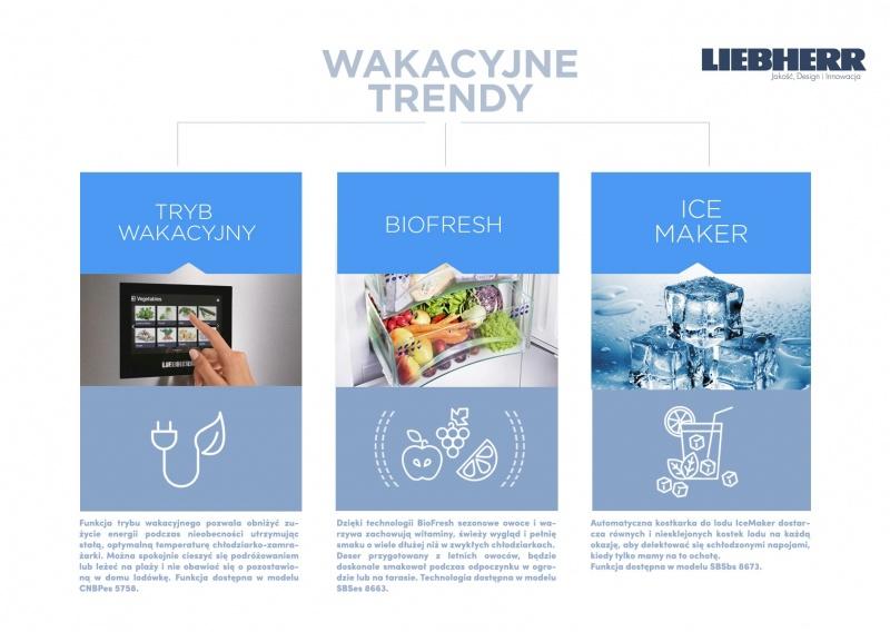 Przed nami lato, czas urlopów i przyjemności. Dlatego postanowiliśmy przedstawić trzy letnie, wakacyjne trendy, proponowane przez markę Liebherr, by móc czerpać radość z innowacyjnych rozwiązań jakie dają nowoczesne chłodziarko-zamrażarki.
