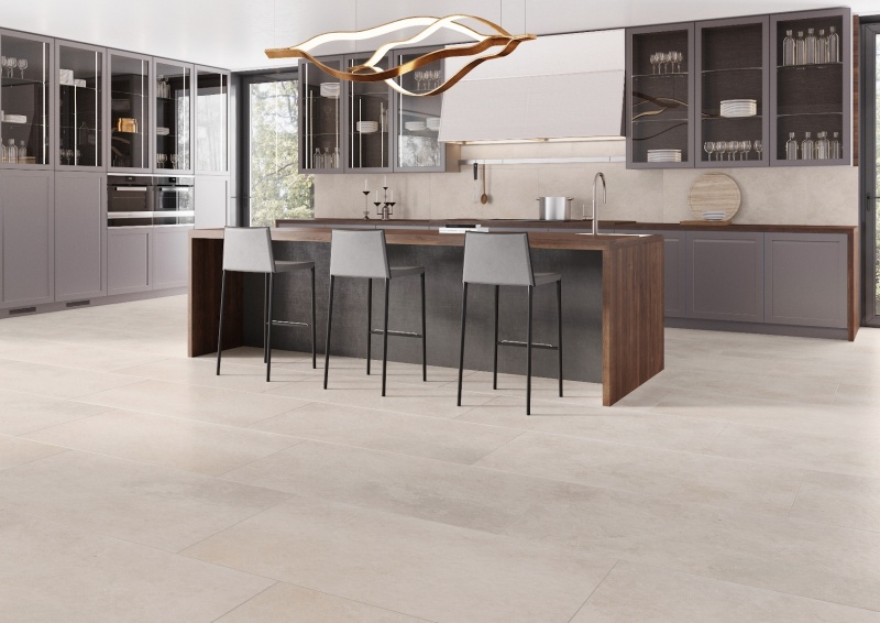 Dzięki wysokim parametrom użytkowym, płytki gresowe imitujące kamień doskonale poradzą sobie także w kuchennych aranżacjach. Z powodzeniem możemy zastosować je zarówno w strefie zmywania, na podłodze oraz udekorować nimi ścianę nad blatem, która narażona jest na częste zabrudzania oraz działanie pary wodnej i wysokich temperatur. Są niezwykle wszechstronne – równie dobrze sprawdzą się w nowoczesnych wnętrzach, towarzysząc prostym w formie i eleganckim meblom, oraz w kuchniach urządzonych w tradycyjnym stylu. W przypadku tych pierwszych warto postawić na wersję total grey, wybierając elementy w jednym lub kilku odcieniach szarości. Do wnętrz stylizowanych pasują natomiast cieplejsze barwy, które podkreślają domowy, nieco sielski charakter pomieszczenia. Nie oznacza to, że szare imitacje kamienia są zakazane w klasycznych aranżacjach. Przeciwnie: łącząc beżowe płytki z szarymi meblami lub dodatkami, stworzymy wnętrze ponadczasowe i niejednowymiarowe.