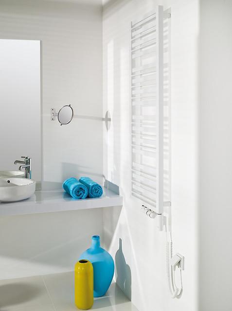Grzejnik, w zależności od koloru i kształtu, może dyskretnie wtopić się w aranżację łazienki lub przeciwnie, wyróżniać się, stanowiąc wyrazisty akcent na tle ściany. Przykładem może być CODE firmy Instal-Projekt, który charakteryzuje się ciekawym designem i bogatą kolorystyką. Jego największe atuty to innowacyjność, unikalne wzornictwo, geometryczna, ponadczasowa forma, możliwość doboru dedykowanych akcesoriów, a także dyskretny odpowietrznik. CODE, wykonany z wyselekcjonowanej stali precyzyjnej, to grzejnik drabinkowy, którego prostokątne profile ułożone zostały naprzemiennie w pionie i poziomie, tworząc przestrzenną formę i wrażenie optycznej głębi. Ponieważ niezwykle istotną rolę we wnętrzu pełni kolor, umożliwiono wybór barwy spośród 37 odcieni dostępnych w palecie Instal-Projekt. Aby grzejnik subtelnie wpisywał się w kolorystykę, powinniśmy dobrać kolor w odcieniu mebli, kafelków lub ścian. Inną opcją jest wybranie barwy kontrastującej z resztą wyposażenia. Jest to z pewnością rozwiązanie przynoszące nietuzinkowy efekt. Możliwość zmiany koloru zaworu lub głowicy również pozwoli zrealizować ciekawe koncepty aranżacyjne i zachować stylistyczną spójność. Warto także wspomnieć o doskonałych parametrach technicznych, które decydują o funkcjonalności grzejnika. CODE ma możliwość podłączenia dolnego (365-565 mm) z opcjonalnym podłączeniem dolnym o rozstawie 50 mm na środku lub podłączeniem bocznym B 500. Co więcej, dostępne szerokości 400, 500, 600 mm oraz wysokości od 610 do 1630 mm pozwalają na zainstalowanie grzejnika odpowiedniego do wielkości łazienki. Dedykowane akcesoria – grzałki elektryczne HOT2 (300W/600W/900W), wieszak HS3 oraz zawory (m. in. zawór termostatyczny kątowy, zawór łazienkowy osiowy, zawór zespolony DUO-PLEX kątowy, VHX-DUO), pozwalające na ekonomiczną i funkcjonalną pracę sprawiają, że model ten spełni oczekiwania najbardziej wymagających użytkowników.