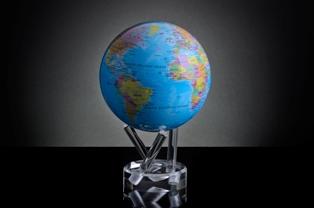 Idąc tym tropem warto zwrócić uwagę na najnowocześniejszy atlas świata w postaci poruszającego się globusa MOVA. Oprócz designerskiego wyglądu posiada mechanizm wprawiający go w ruch. Składa się on z napędu wykorzystującego ziemskie pole magnetyczne i promienie słoneczne. Energia, dzięki której zaczyna się samoistnie poruszać, jest wytwarzana za pomocą światła docierającego do baterii słonecznych. Element magnetyczny, który analogicznie do kompasu współdziała z polem magnetycznym ziemi, pozwala mu na utrzymanie biegunowości. Cienka przestrzeń pomiędzy grafiką, a akrylową powłoką wypełniona jest płynem o specjalnych właściwościach optycznych. Powiększa on mapę i sprawia wrażenie jakby znajdowała się na zewnętrznej części globusa.